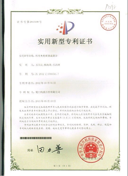 質(zhì)量專(zhuān)利證書(shū)